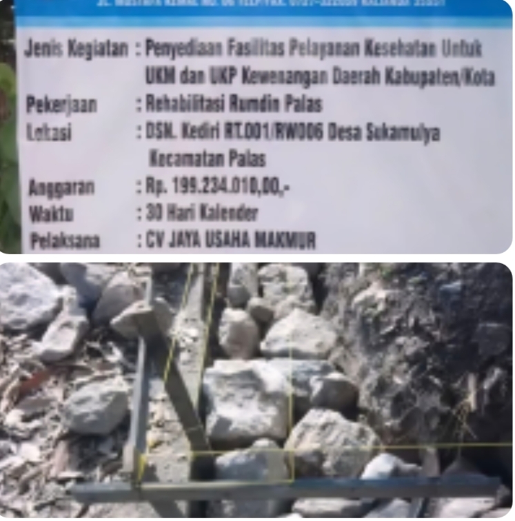 Lembaga Swadaya Masyarakat (LSM) PRO RAKYAT menyoroti keras pelaksanaan proyek Rehabilitasi Rumah Dinas (Rumdin) Palas milik Dinas Kesehatan Kabupaten Lampung Selatan, sebagaimana tercantum dalam papan informasi proyek dengan nilai Rp199.234.010,00 bersumber dari APBD Kabupaten Lampung Selatan TA 2025, waktu pelaksanaan 30 hari kalender, dan dikerjakan oleh CV Jaya Usaha Makmur di Dusun Kediri RT 001/RW 006 Desa Sukamulya Kecamatan Palas.
