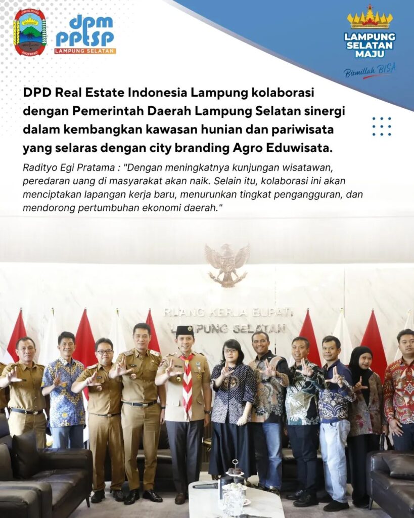 “REI dapat turut berkontribusi dalam pembangunan kawasan perumahan dan kompleks villa di Kalianda, yang memiliki potensi wisata besar. Tentunya kawasan ini harus dilengkapi dengan amenitas yang menarik bagi wisatawan,” ujar Egi.